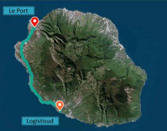 Grâce à sa connexion directe aux grands axes routiers, notre plateforme dessert rapidement l’ensemble du territoire réunionnais. Située à seulement 60 km du Port (soit environ 40 minutes via la route des Tamarins, en 2×2 voies), elle bénéficie d’un accès fluide aux principales infrastructures.